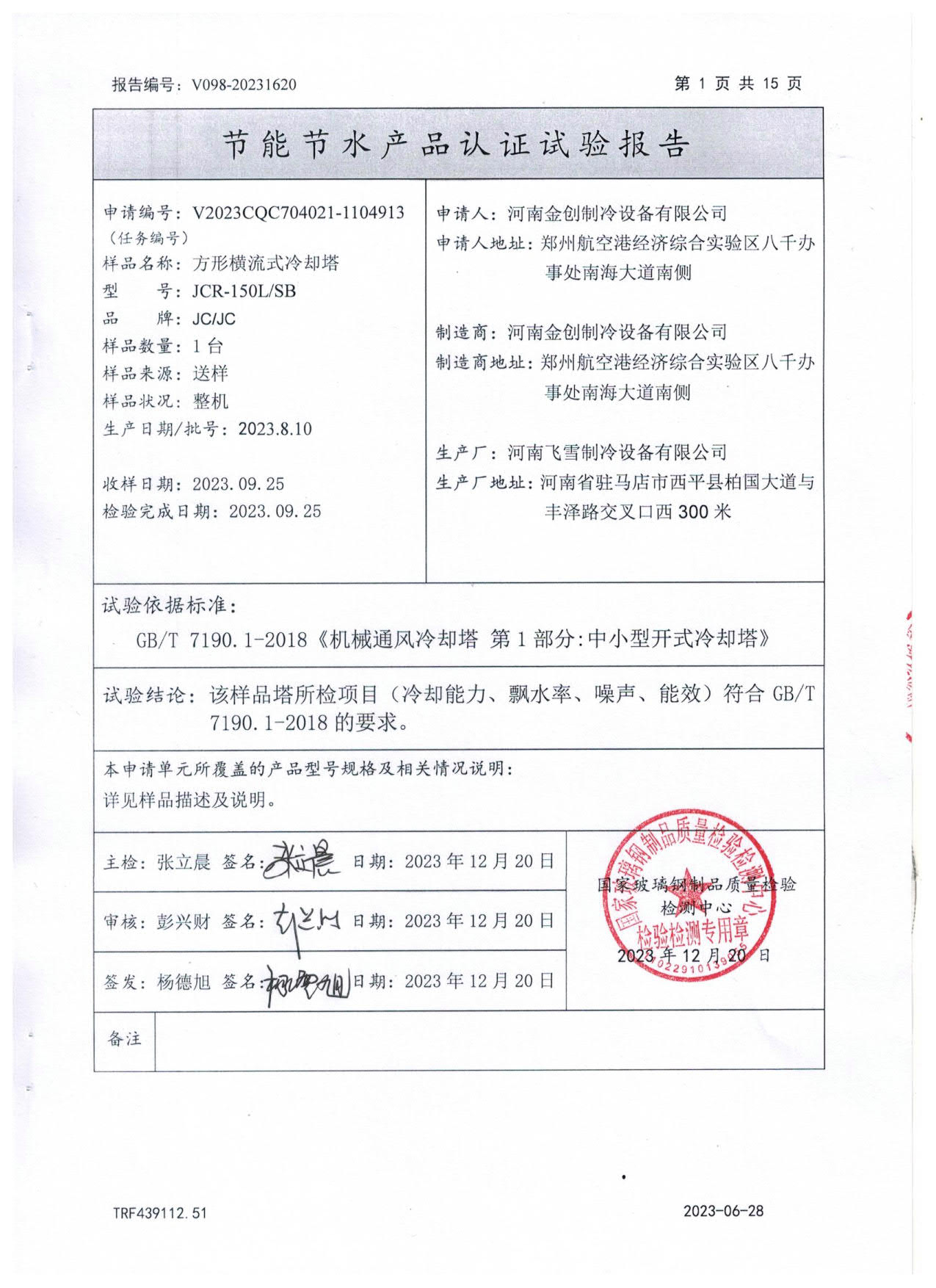 主要產品有: 圓型逆流式標準型冷卻塔 、 圓型逆流式高溫型冷卻塔 、 圓型逆流式靜音型冷卻塔 、 方型橫流式低音型冷卻塔 、 方型逆流式低音型冷卻塔 、 方型逆流式靜音型冷卻塔 、 閉式玻璃鋼冷卻塔 、 方型橫流式靜音型冷卻塔 、 JC冷卻塔特殊訂制 、 冷卻塔配件類 、